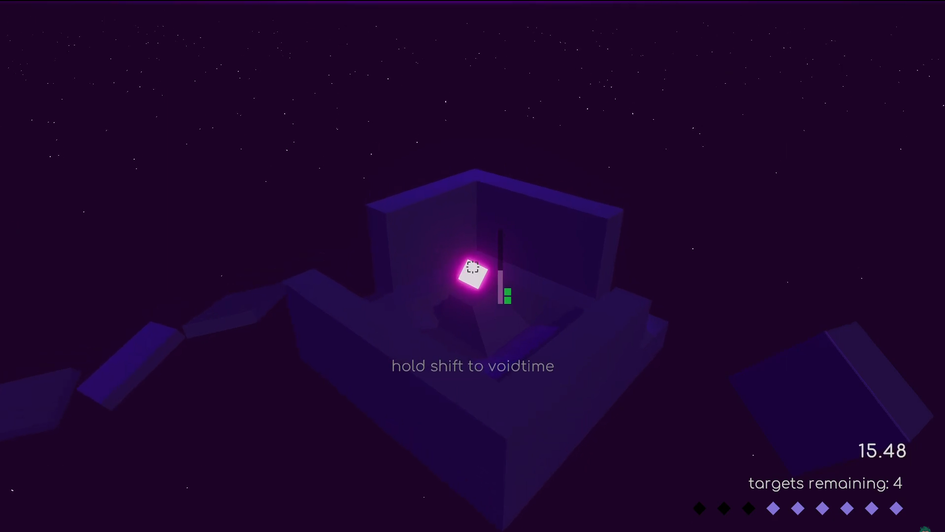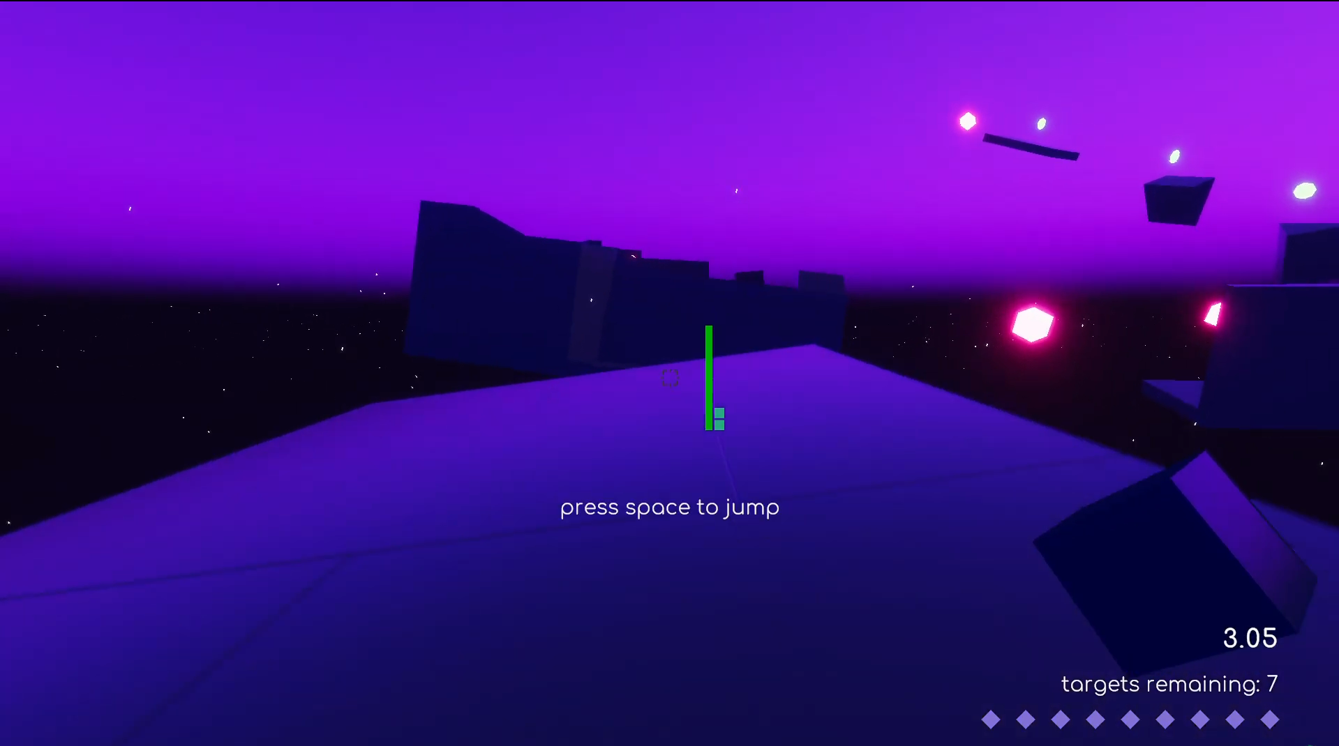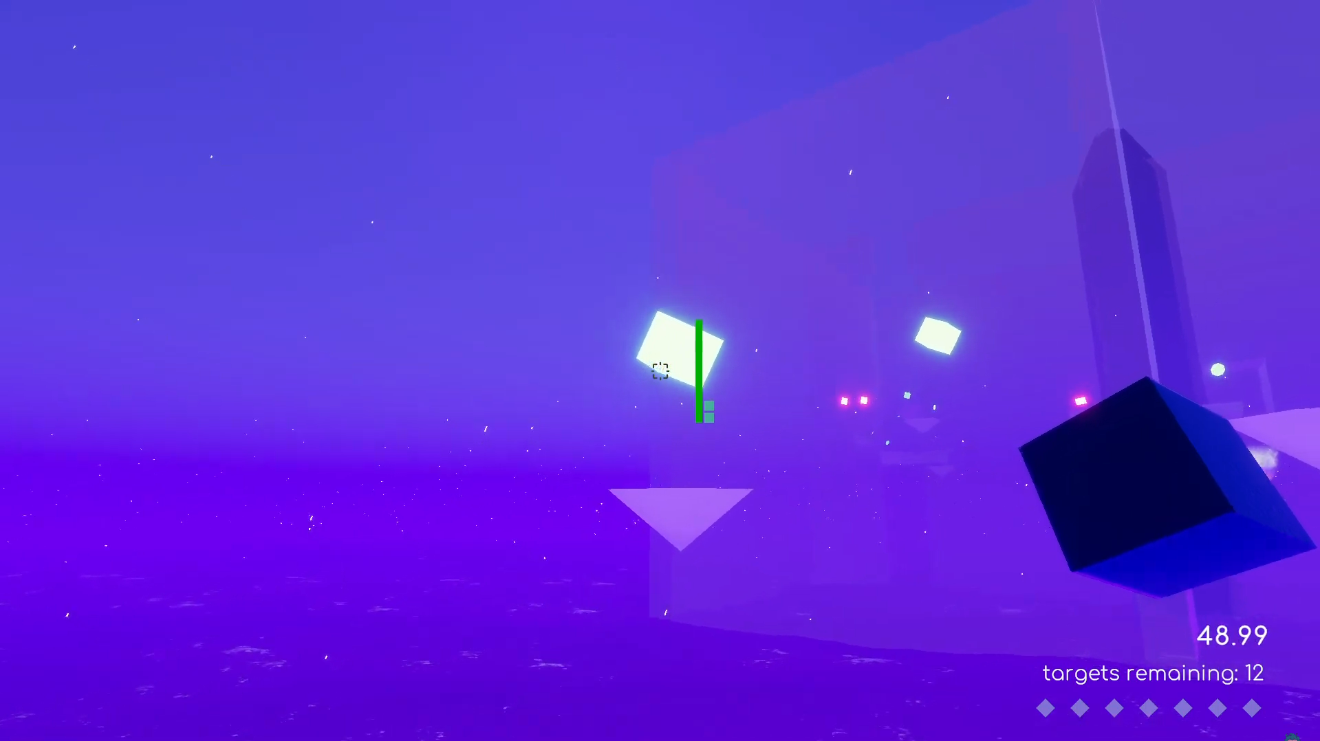 This game tasks you with traversing two liminal enviroments as far as possible and destroying all the targets. You have a grapple and slow-time abilities to help you along your way.